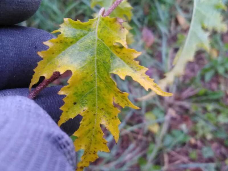 Valkokirjokoivun 3vk vanha lehden väritys.