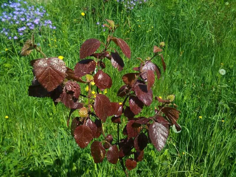 Puhkeaa lehteen vihreälehtisenä. Lehdet punertuvat kasvukauden edetessä ja pysyvät punaisina syksyyn saakka.