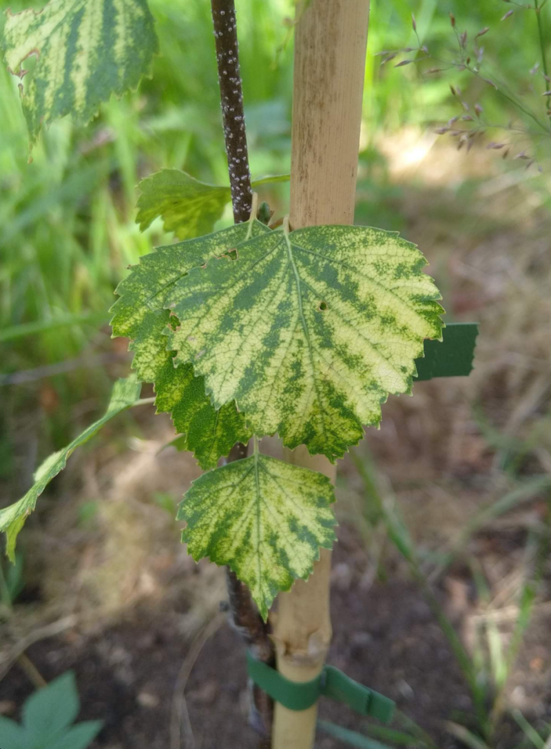 Rauduskoivun harvinainen kirjavalehtinen muoto.
