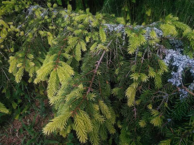 Ikikultainen kuusen latvamutaatio. Tämä löydettiin Iitin Koskenniskan arboretumin alueelta puunkaadon yhteydessä.