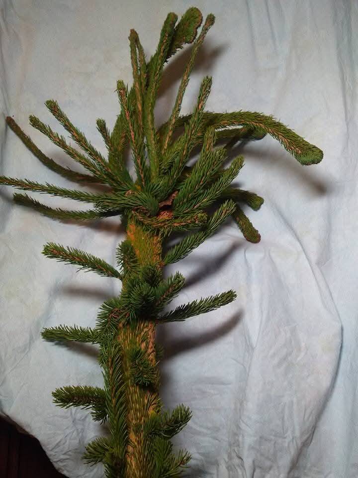 Orimattilan Lintulasta löytynyt kapeahko, riippakasvuinen käärmekuusi.