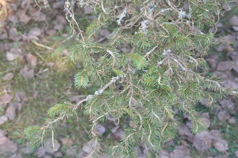 Viuhkamainen pallokuusi, kuusen sivuoksassa Lahden Hennalassa.