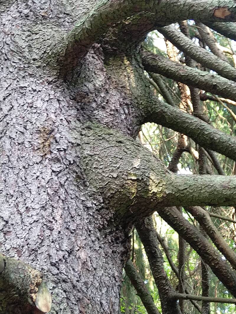 Tässä puu on kasvanut ensin patamaisesti, jonka yksi alimmainen oksan haara on kaareutunut ylöspäin, kasvattaen surukuusimaisen kapean latvan.