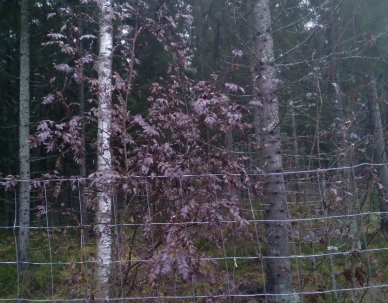 Tämän muodon lehdet pysyvät pitkään kiinni puussa.