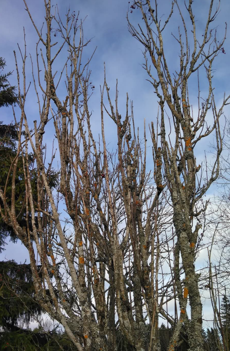 Alla kuva Tampereelta löytyneestä mustalehtipihlajasta.